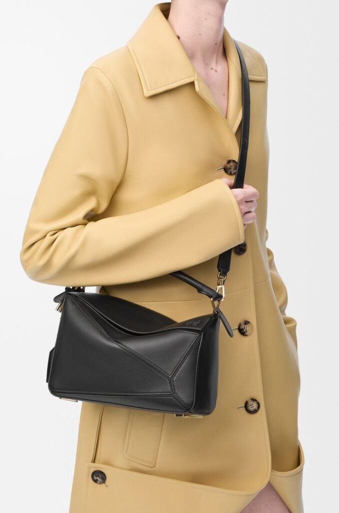 Introduced by Jonathan Anderson, the Loewe Puzzle bag is a modern classic. Its geometric design and soft leather make it both stylish and functional. Choose black or beige for a look that never dates.
