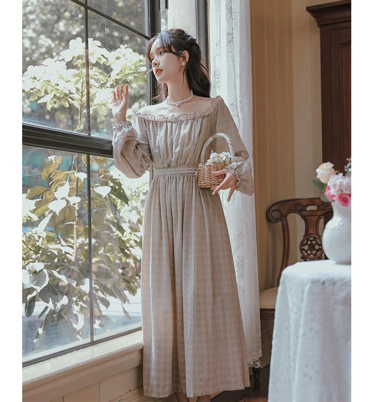 Pair a beige linen wrap dress with brown leather flats and a straw hat. Layer over a knitted cardigan and accessorize with delicate gold jewelry for a dreamy countryside vibe.